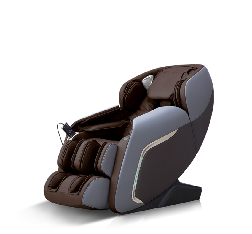 ·本产品设计了⼀组能上下⾏⾛、四轮驱动、静⾳设计的按摩机械⼿。 ·设有指压、揉捏、拍打、敲击、揉捏拍打同步五种仿真按摩⼿法。 ·设有肩部⾃动检测定位。 ·设有⾃动按摩功能:⾃动按摩包括舒适按摩、轻松按摩、牵引按摩、肩颈按摩、背 腰按摩、全⾝按摩、护椎按摩、疲劳恢复、舒筋活络、美臀塑形、安神助眠、全⽓ 压等12种⾃动按摩功能。 ·设有上半⾝⼿动按摩功能(全⾝、定点、局部三种按摩部位选择,各按摩⼿法速度 均有五档可调整,在定点和局部状态下,机械⼿可上、下位置调整功能;在拍打、 指压、敲击按摩时,按摩球的宽度有宽、中、窄三档选择)。 ·⽓压按摩功能;全⾝⽓压、⼿臂⽓压、腿部⽓压三种模式选择,三档强度。 ·设有⾜底滚轮按摩功能。 ·设有⼩腿架采⽤⽆级伸缩调节功能,适应不同⼈⾝⾼使⽤。 ·设有背部热疗功能:采⽤碳纤维为远红外热源。 ·靠背架下躺采⽤滑轨技术使靠背离墙始终保持零空间,最⼤限度节约空间。 ·靠背架导轨采⽤曲线导轨技术,完全贴合⼈体背部曲线,从头部⾄⼤腿都能享受贴⾝ 按摩。 ·⾳乐播放系统,左右上⼿臂内置3D数字⾳响。可利⽤智能设备的蓝⽛功能,进⾏⽆线 连接播放⾳乐。 ·设有智能语⾳声控识别功能。 ·在左右⼿掌⽓囊袋中设有凸点按摩带及磁疗功能。 ·左扶⼿上设有开关键、⼩腿架升降键、⾃动模式键、联动调节键、零重⼒键等五种 扶⼿快捷键。 ·右扶⼿上⾯设有USB充电功能。 ·两侧扶⼿设有LED意境灯。 ·配置LCD彩屏⼿控器。 ·关机⾃动起坐功能,机械⼿⾃动复位功能。
